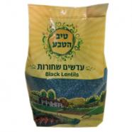 1 כוס עדשים שחורות, מים, תבלינים לפי הטעם.